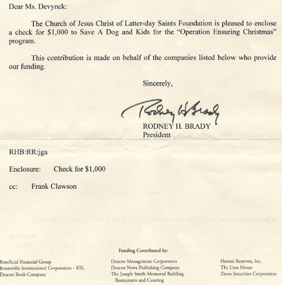 you to all who donated including our Generous Governor Jon Huntsman Jr. and