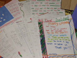 12/10/07 "I am a third grade teacher in Washington State and my students made cards for soldiers. I wanted to know if you knew where I could send them so that some soldiers could be encouraged this Christmas even though they are far from their families. Thanks for your help."Denise M.