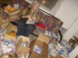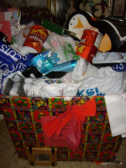 Over the past eight months, Denise DeVynck collected items such as hand warmers, socks, personal hygiene products, homemade treats, and handmade cards.