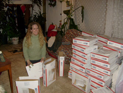 Today 150 boxes were shipped out to the soldiers in hopes of arriving in time for the holidays."